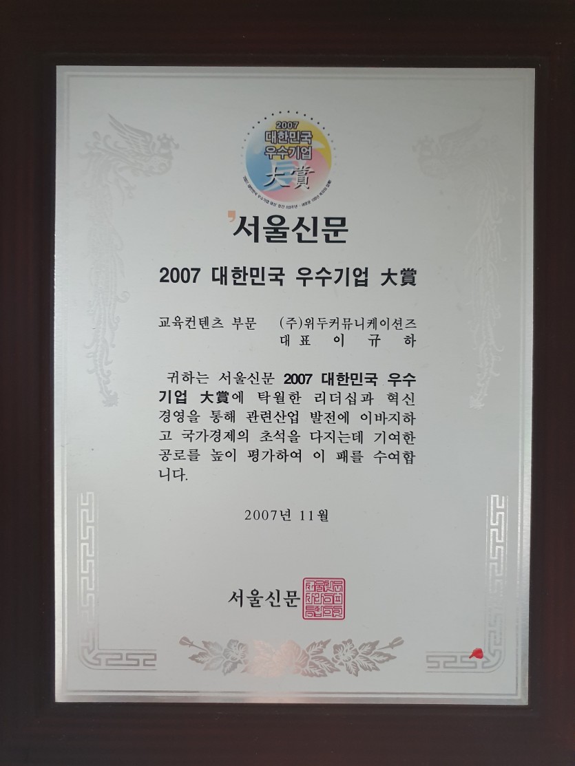 2007 대한민국 우수기업 대상 페이지 정보 작성자 WeDu 댓글 0건 조회 5,815회 작성일 19-05-30 19:31 본문 2007-11-00 대상 교육 콘텐츠 부문 2007 대한민국 우수기업 대상 서울신문 List Previous제 8회 디지털 이노베이션 대상 19.05.30