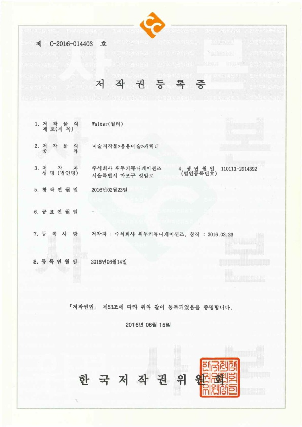 [한국/저작권] 월터 페이지 정보 작성자 WeDu 댓글 0건 조회 5,972회 작성일 19-05-30 19:09 본문 2016-06-15 저작권 C-2016-014403 월터 / 미술저작물>응용미술>캐릭터 List Previous[한국/저작권] 파벨 19.05.30 Next[한국/저작권] 필립 19.05.30